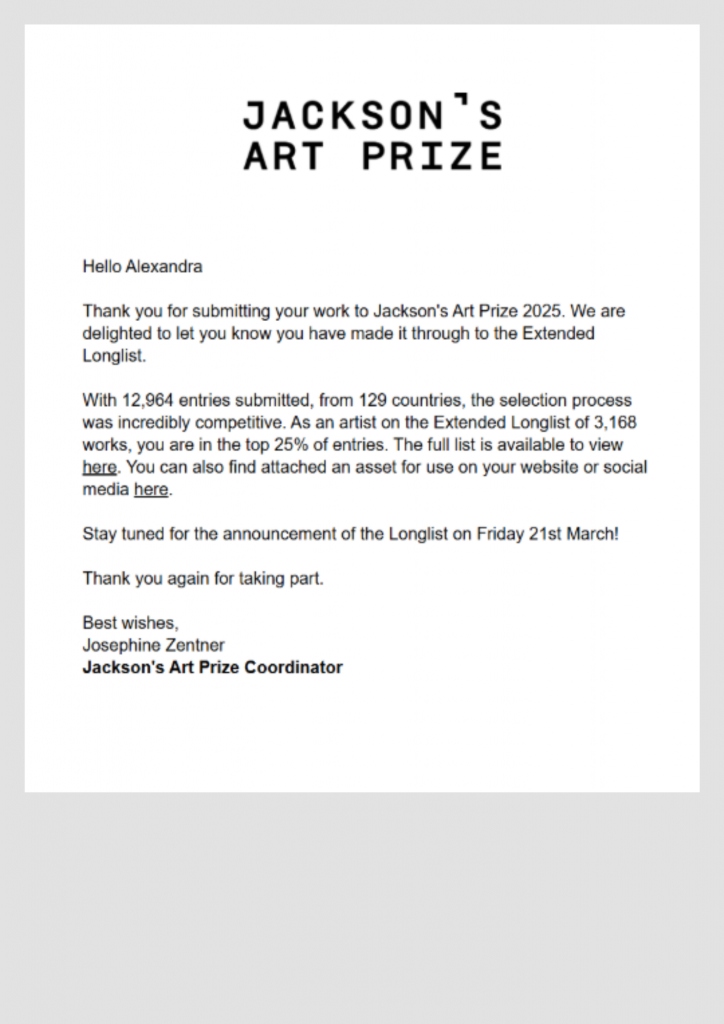 I’ve Made it to the Extended Longlist for the Jackson’s Painting Prize!