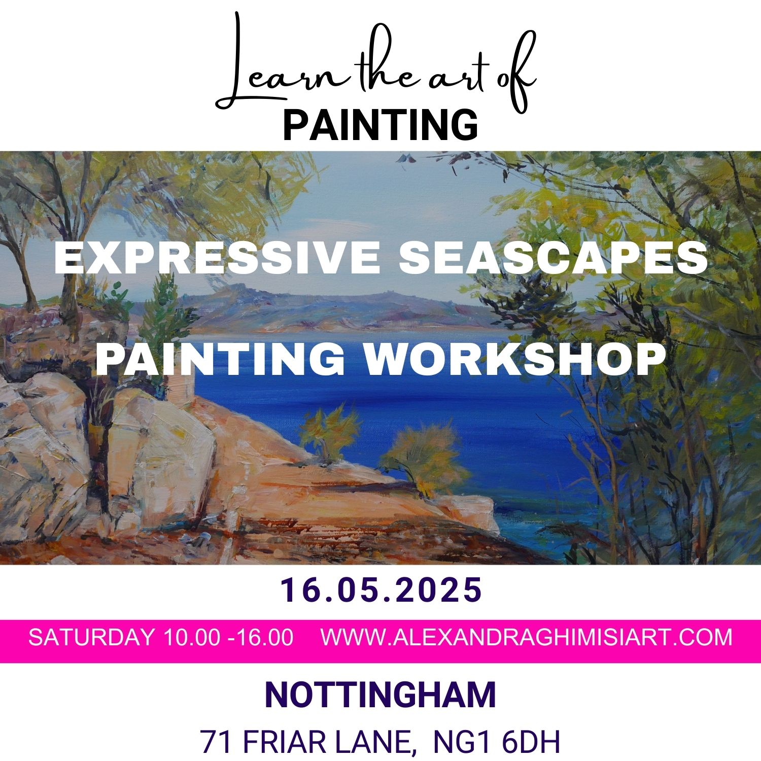 Dive into the dynamic world of expressive seascape painting in this inspiring one-day acrylic workshop. Open to all levels, this session invites you to explore bold colour, energetic brushwork, and expressive mark-making to capture the movement, mood, and atmosphere of the sea. Through guided demonstrations and hands-on practice, you’ll learn how to simplify forms, build texture, and paint intuitively. All art materials are provided, so you can fully immerse yourself in the creative process and leave with a finished seascape full of energy and emotion.
